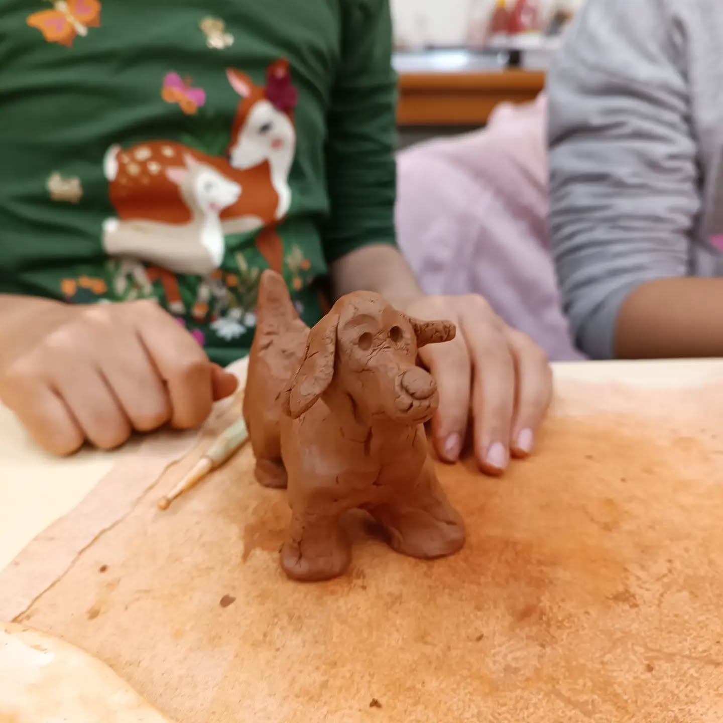 Não há nada como meter as mãos no barro. Começamos com uma bolinha, puxamos uma pontinha e já tem uma patinha, só falta continuar e ver o que isto vai dar: um cão a correr ou um gato a espreguiçar… ou quem sabe um extraterrestre a dançar...