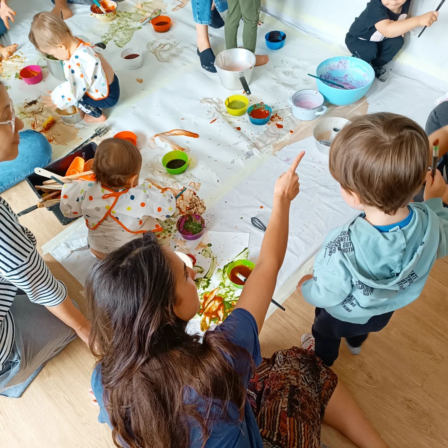 Experimenting Paintings: It's time to "cook" our paints! Stir, stir, stir and we're ready to go! Flour and water, cabbage, tomatoes or spices are part of this painting recipe. In this workshop we'll discover how our edible paints are made, then just explore non-stop!