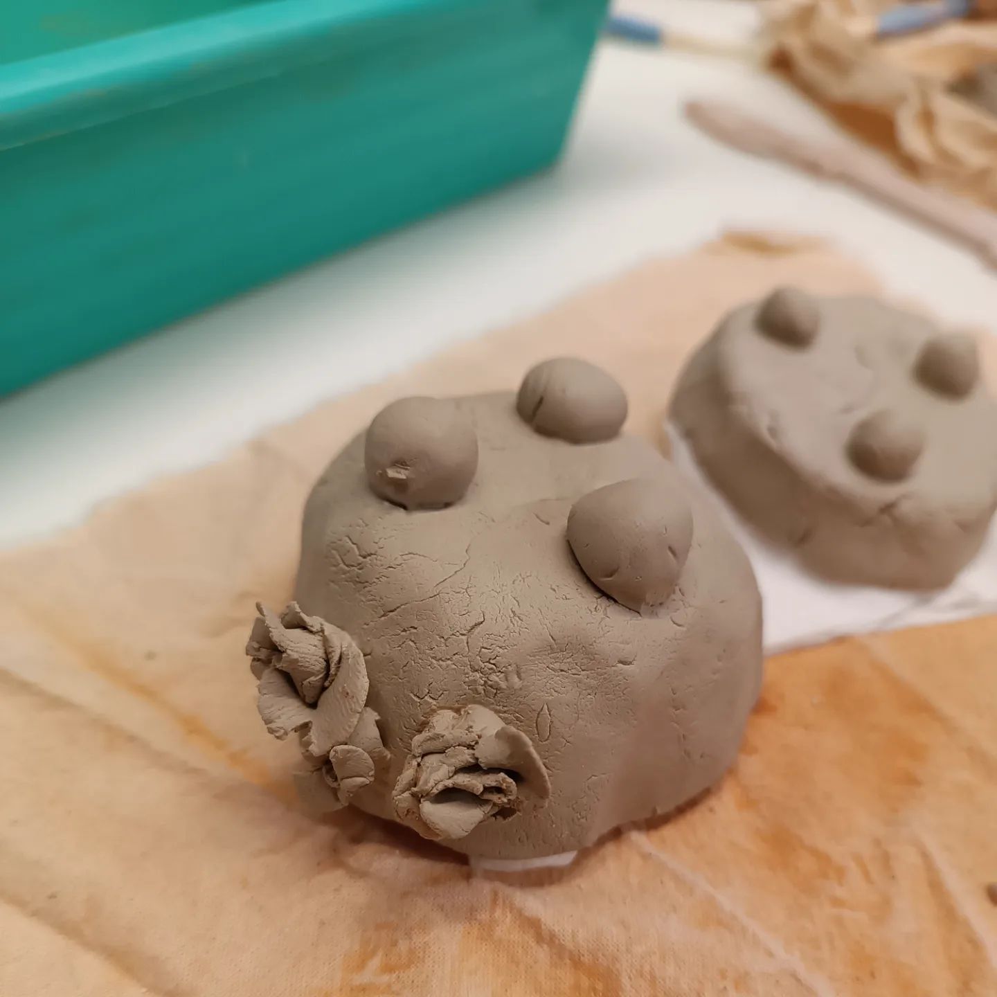 Bowl for him, bowl for her: In this workshop we will create two bowls using the pinching technique. We will build one or more feet for the base, decorate it with textures or reliefs, and paint it with colored engobes.
